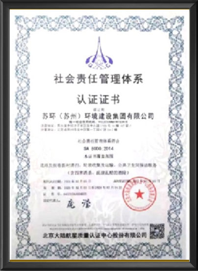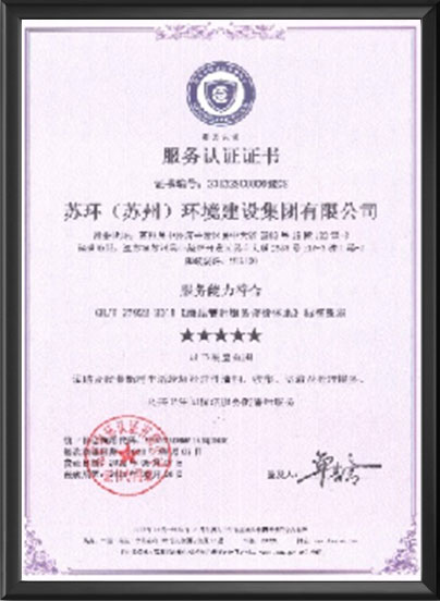 目前,集團公司已獲得“城市生活垃圾經(jīng)營性清掃、收集、運輸服務(wù)許可證” 、“水域(河道)清潔治理服務(wù)專業(yè)資質(zhì)證書” 、“國家一級清潔認證資質(zhì)”、“江蘇省二級保安服務(wù)資質(zhì)”等資質(zhì)證書 ,成為國家清潔行業(yè)“常務(wù)理事”單位。集團先后通過了質(zhì)量管理體系、環(huán)境管理體系、職業(yè)健康安全管理體系的認證、五星售后服務(wù)認證體系、五星清潔環(huán)衛(wèi)服務(wù)等級認證、社會責(zé)任管理體系認證、誠信管理體系認證證書,并榮獲了守合同重信用企業(yè)、 AAA資信等級、AAA級信用等級評估、AAA級重合同守信用企業(yè),連續(xù)12屆獲得市級“市容環(huán)衛(wèi)杯”先進單位,江蘇省第九屆園博會“優(yōu)秀服務(wù)商”,蘇州市物業(yè)協(xié)會常務(wù)理事。
